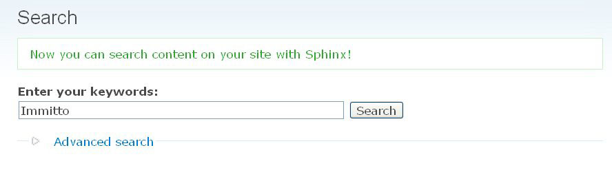 - В течении некоторого времени будет происходить автонастройка Sphinx, после чего Вас перенаправит на эту страницу, где Вы можете проверить как работает поиск.