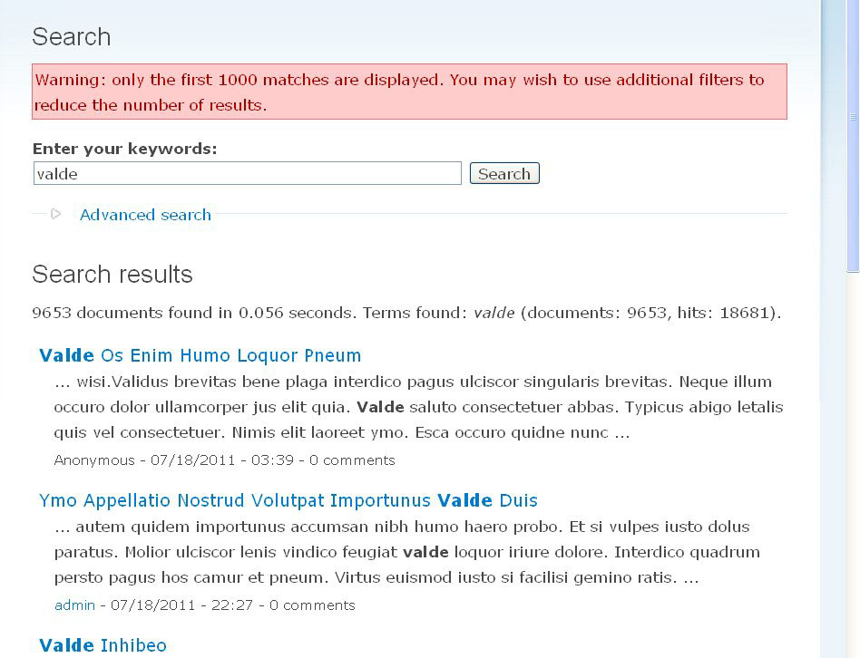 - Все события переиндексации заносятся в системный лог сайта(если у Вас включен модуль Database logging). В системном журнале Вы сможете посмотреть, все ли материалы успешно проиндексировались.